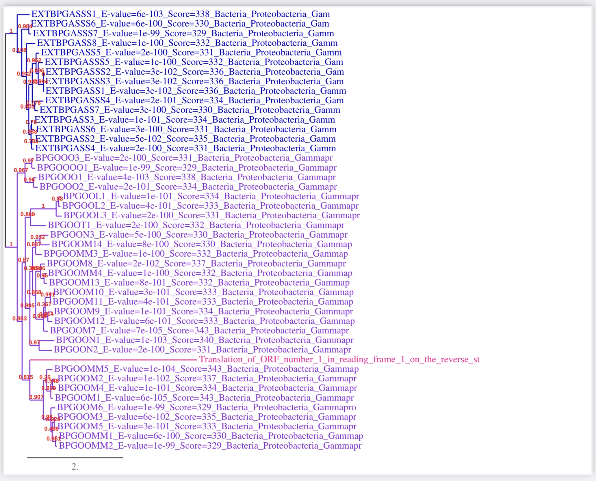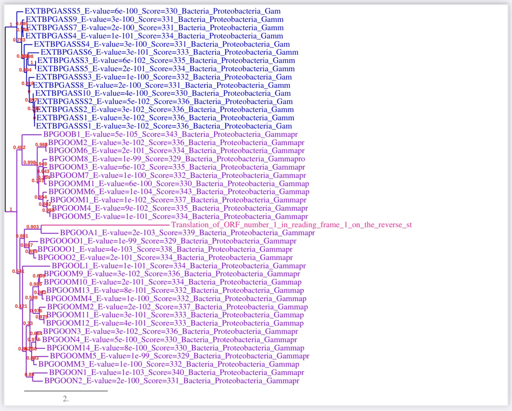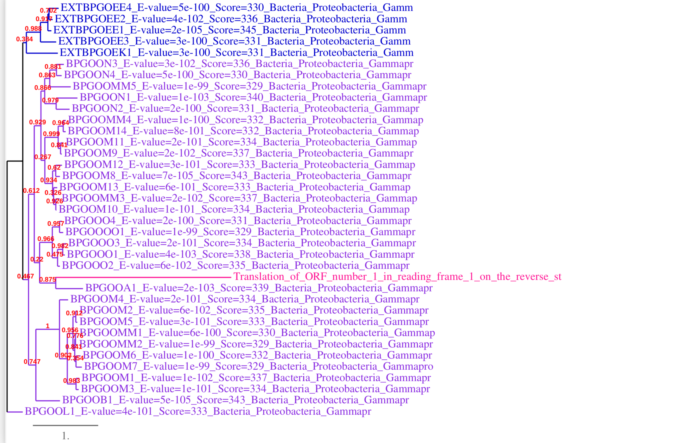 - et si vous remontez encore au noeud précédent, qui a un support de noeud de 1, il y a encore tout un groupe de seq qui ancre votre ORF ds le GE.