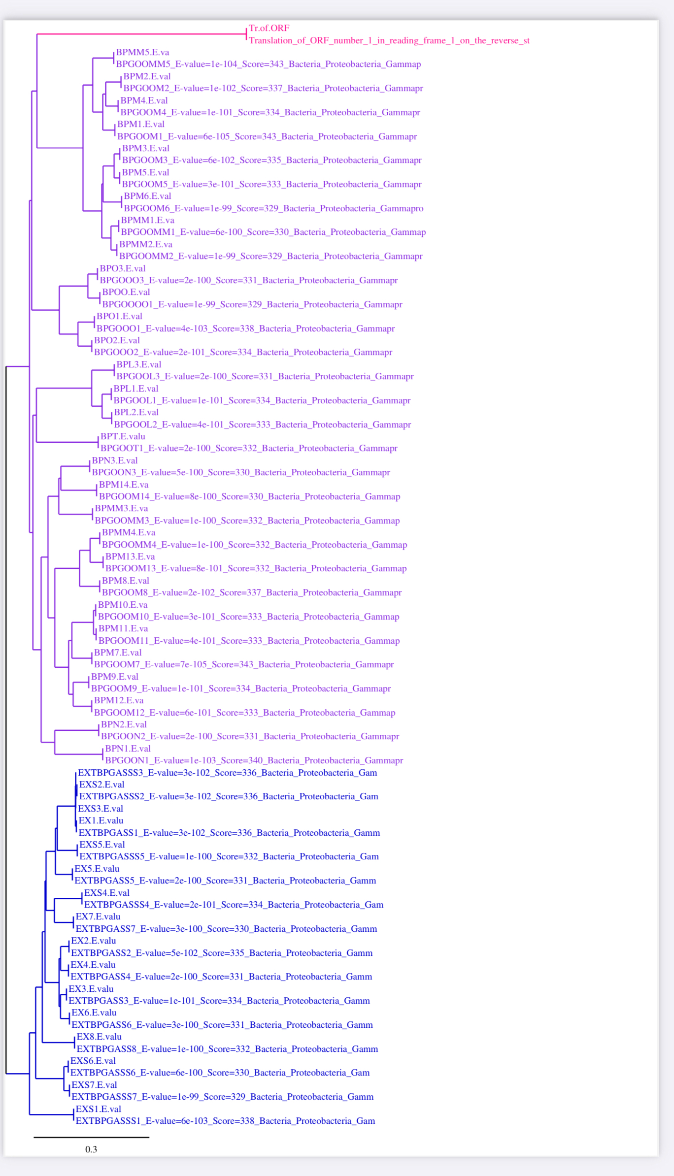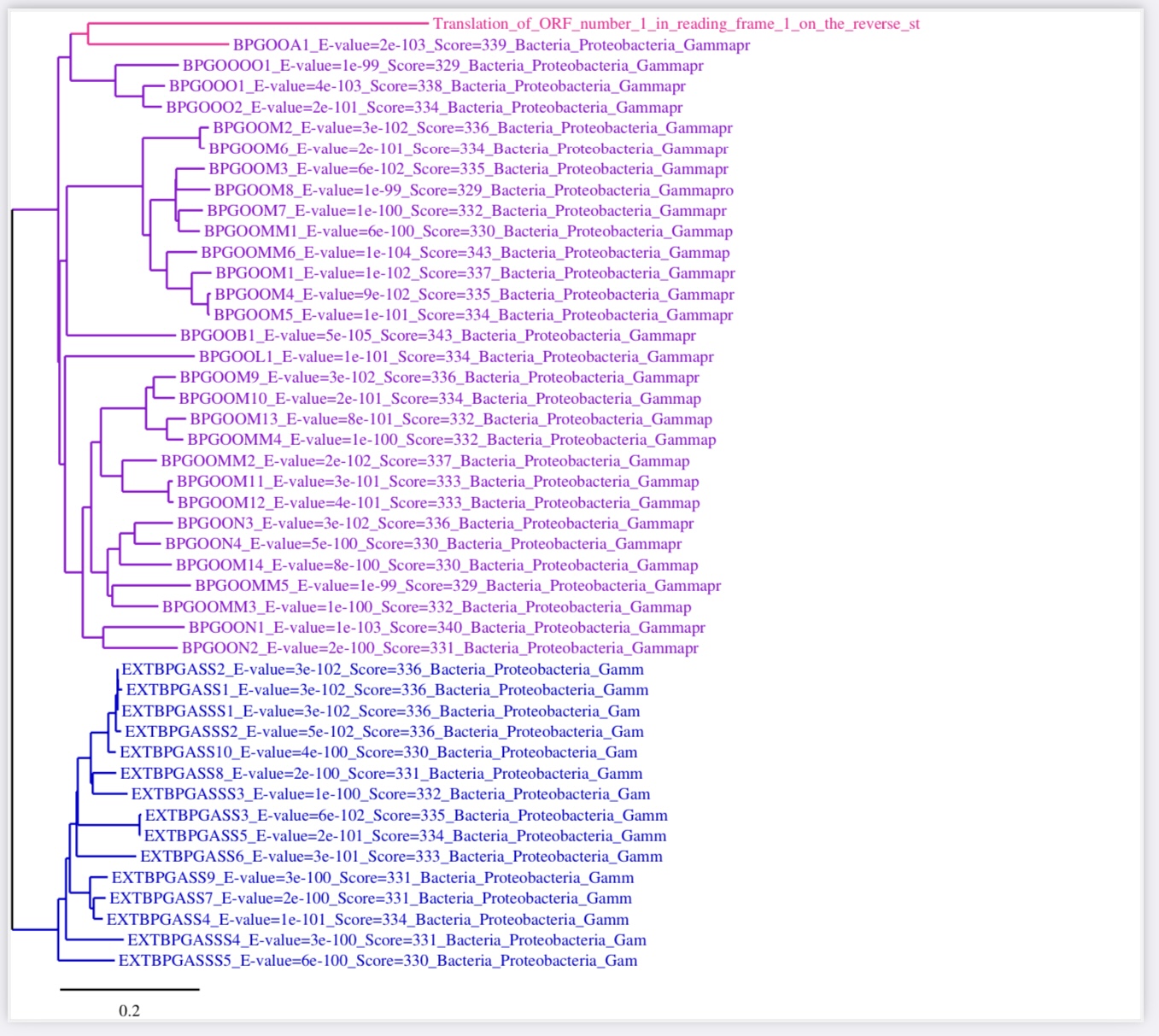 - la seq BPGOOL1 émergera probablement avec le groupe externe. Pour l'instant votre arbre est enraciné sur cette séquence.