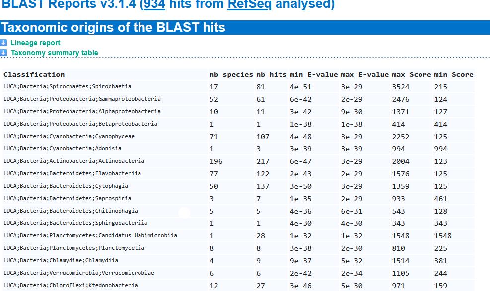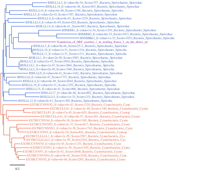 On a tout de même essayer avec deux groupes ayant 2 ordre différent : LUCA; Bacteria;Spirochaetes:Spirochaetia et LUCA:Bacteria:Cyanobacteria:Cyanophyceae